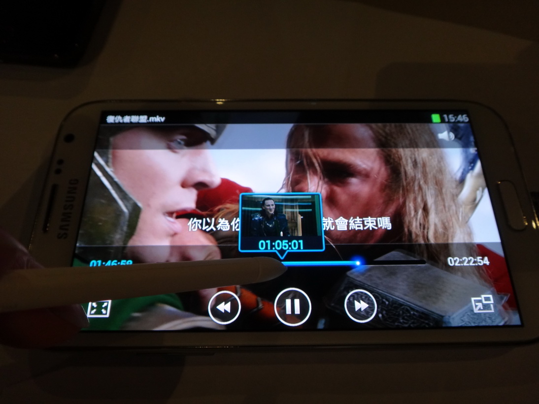 懸浮預覽 (Air View)在影片播放時,將 S Pen 移置時間軸上即會跳出預覽畫面。