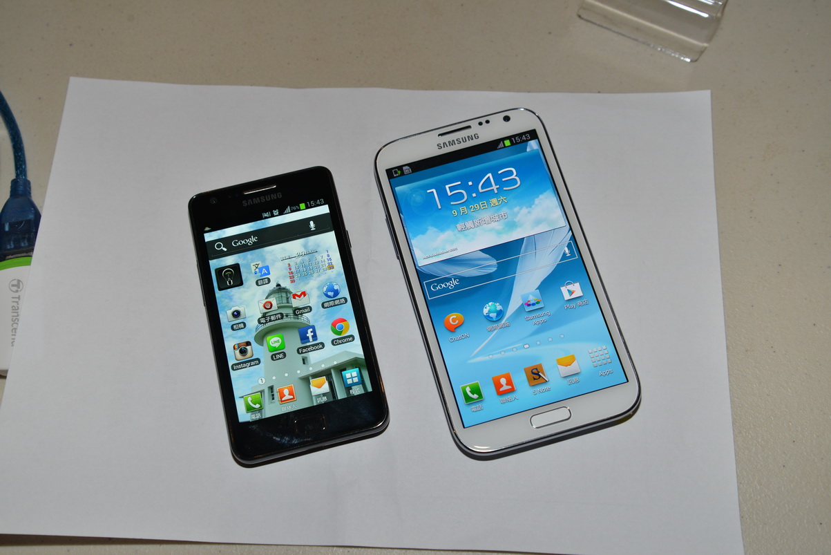 Galaxy Note 2 的螢幕長度快跟 S2 一樣長,網友們可以想一下 5.5 吋到底有多大了。