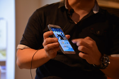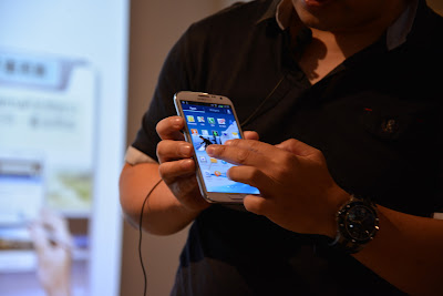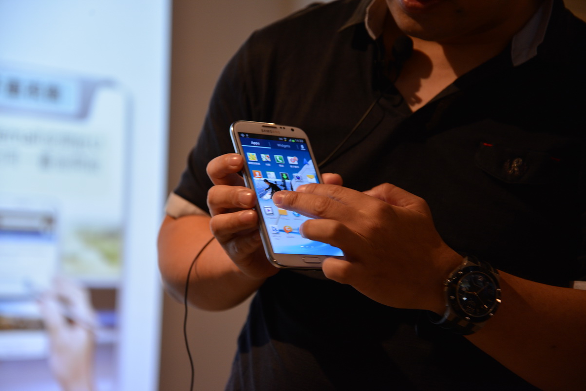 經過阿達快速分享了使用心得後,重點就是實機體驗啦!實際握著 Galaxy Note 2 的感覺真是莫名的興奮,不過真的很好握而且變長了。