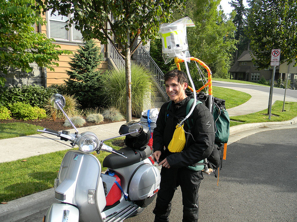 Google 街景車大家都知道,不過現在有人也想仿照Google街景車來拍攝360度的風景。來自國外的Gabriel Paez ,計畫駕駛 2005 Vespa PX150由俄勒岡州的海邊橫跨美國緬因州的波特蘭,並利用身上9部iPhone所組成的巨型全景攝錄器材,來記錄這段跨洲之旅。