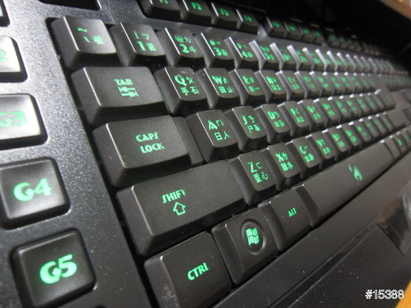 另一個重點是,帝皇蠍專業版鍵盤和DeathTaker奪命蠍滑鼠還可任意更換鍵盤的鍵字顏色,使用手冊上說可以設定1600萬色,設到手軟呀~下面是我設定綠色。