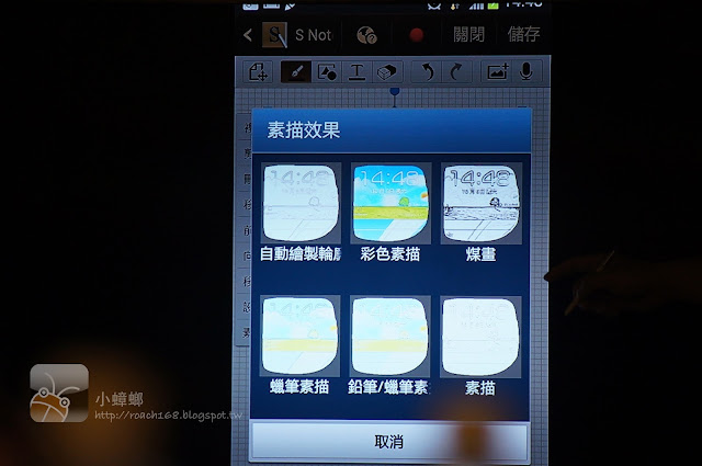 如果你覺得自己繪圖沒天份,沒關係,Note 2提供的創意素描也可以讓你從麻瓜變畢卡索(最好有這麼誇張啦)內建的圖案,可以讓你自由取用編輯,只要你有想法的話,即使畫出來的不是名畫,也是可以成為一張美麗的圖唷(有沒有很神奇?)