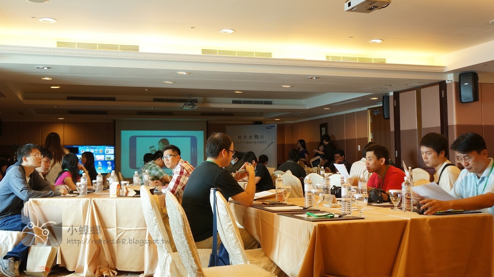 會場的佈置,還算讓大家都能看得清楚,畢竟各桌都有錯開來,不太會互相擋住,正前方有主螢幕,旁邊還有Samsung的Smart TV做副螢幕