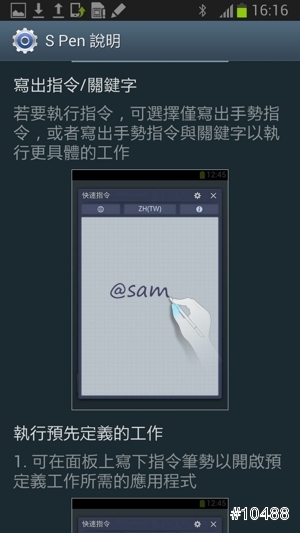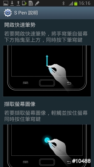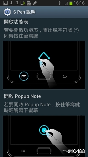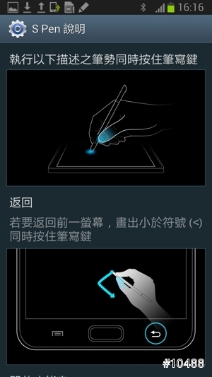 例如前一頁或功能表開啟,都可以按下S PEN的按鈕後使用感應筆觸