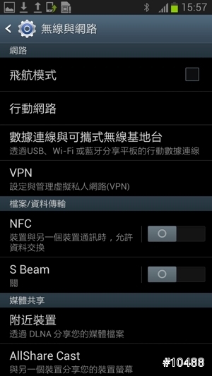 對了!NFC與S BEAM要到『無線與網路』裡開啟