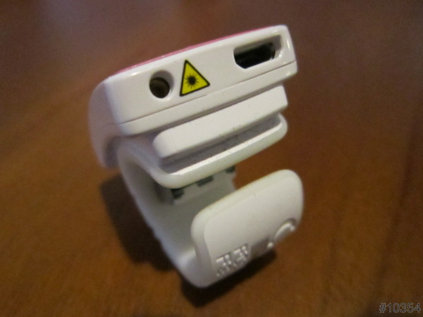 前側有雷射指標發射孔,內含可充電的鋰電池,可以透過micro USB連接埠充電