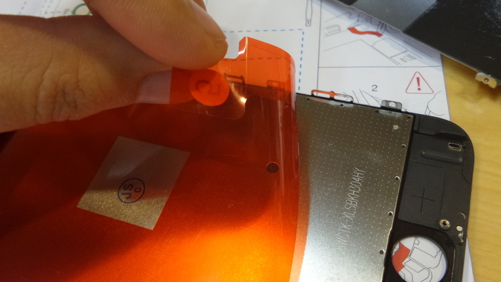 NS背面包好後,正面的膜要將其撕開,來黏上具有保護的玻璃貼。