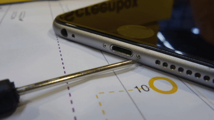Type-C的USB充電孔是屬於長條型的孔洞,比起圓孔會稍微好挖,但要注意別用刀片傷到了內部金屬PIN。