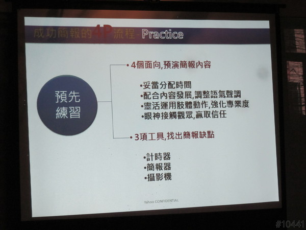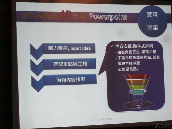 先來談談今天上半場的心得,經由達人的介紹對於簡報的制作有了比較清楚的概念,不過在此有個口訣提供讓各位參考就是