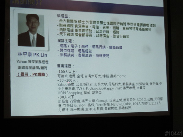 這次講授邀請到的達人是YAHOO資深業務經理 林平康先生