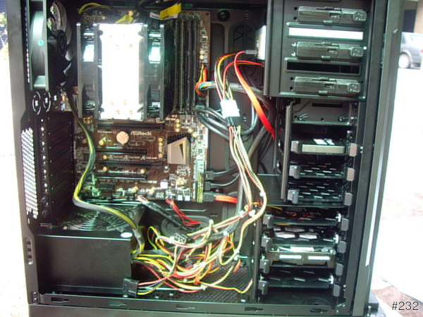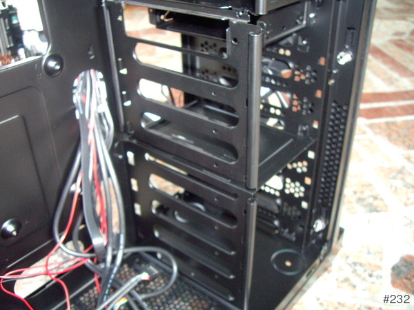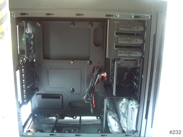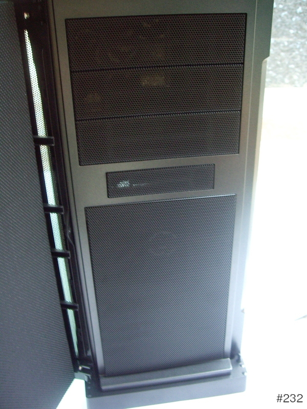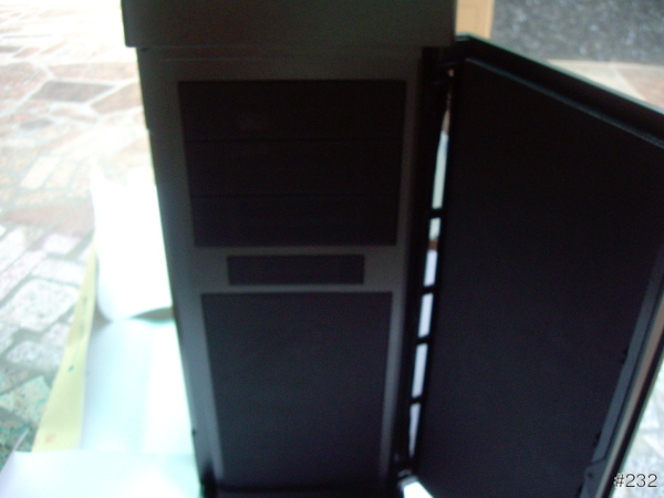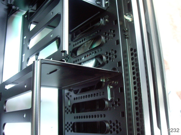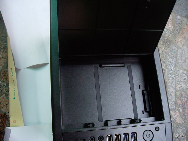 ▲打開機殼門板後的樣子(門板右開),上方支援3個5.25吋裝置,中間為一個外露的3.5吋裝置,可以讓你安裝例如讀卡機或著擴充面板。