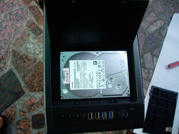 ▲3.5" HDD 實際放入的樣子。不過插進去容易,要拔出來施力點有點難下手移除。