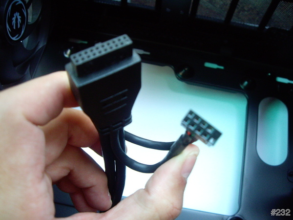▲USB 3.0 的 19 Pin接頭,不過要是你的主機板不支援也不用擔心,它也附有 USB 2.0 的轉接頭,不會讓你機殼的前面板 USB 3.0 無用武之地<( ̄︶ ̄)>只不過速度是跑 2.0 的而已