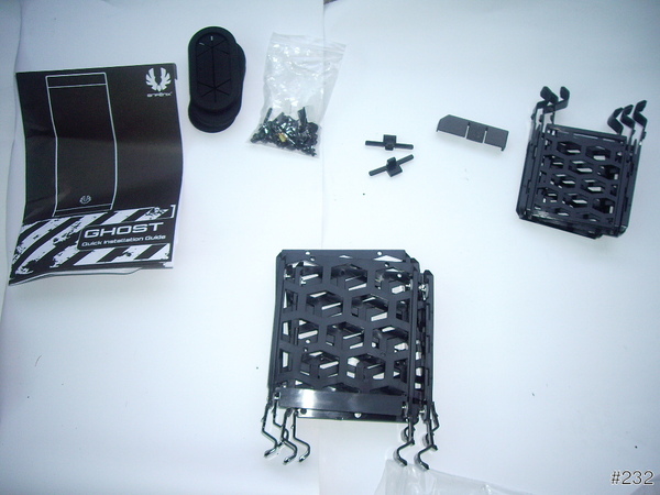 ▲機殼所附的工具有:手冊、橡膠墊、螺絲、熱插拔防塵蓋、3.5" 硬碟架、2.5"硬碟架以及它的門板固定片。