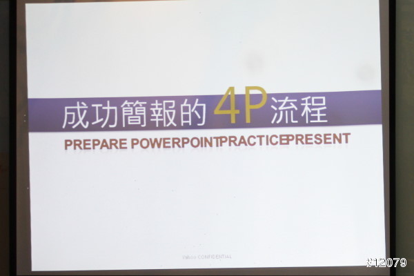 成功的簡報要掌握4P流程:Prepare、PowerPoint、Practice、Present。