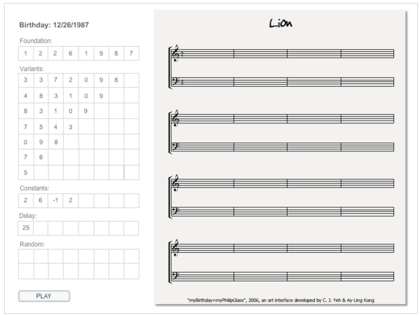 藝術家葉謹睿在自己的網站「cjny.com」的數位藝術中發布了這個有趣的小玩意,它可以經由輸入你的名字(僅限英文),生日,來讓你獲得「philip glass」風格的專屬於你的生日旋律!