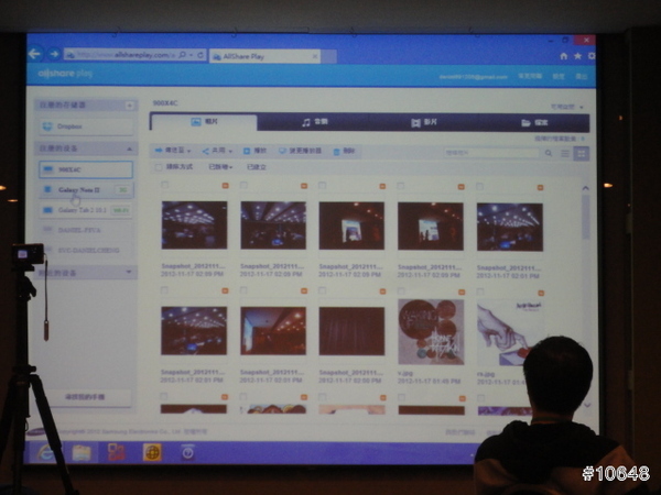 ▼ AllShare Play - Apps的使用示範, 現場是以Galaxy Note 10.1來使用AllShare Play上的資料, 只要透過一個 Samsung 帳號,就能夠整合不同的聯絡人帳號,建立你的專屬群組,輕鬆跨平台互動、分享精采照片!