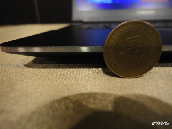 ▼ Samsung Series 7 極簡設計與極致效能的絕代風華 - 金屬髮絲紋設計外觀搭載著強悍效能,螢幕約只有一個一元硬幣半徑大小,筆電最厚的地方也不過就一個十元硬幣直徑大,超薄機身讓你輕鬆帶著走,工作無負擔(資料來自Samsung Taiwan)