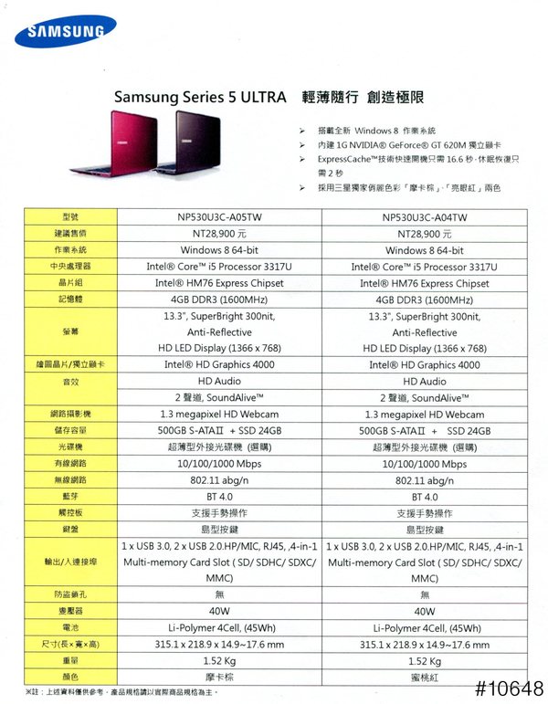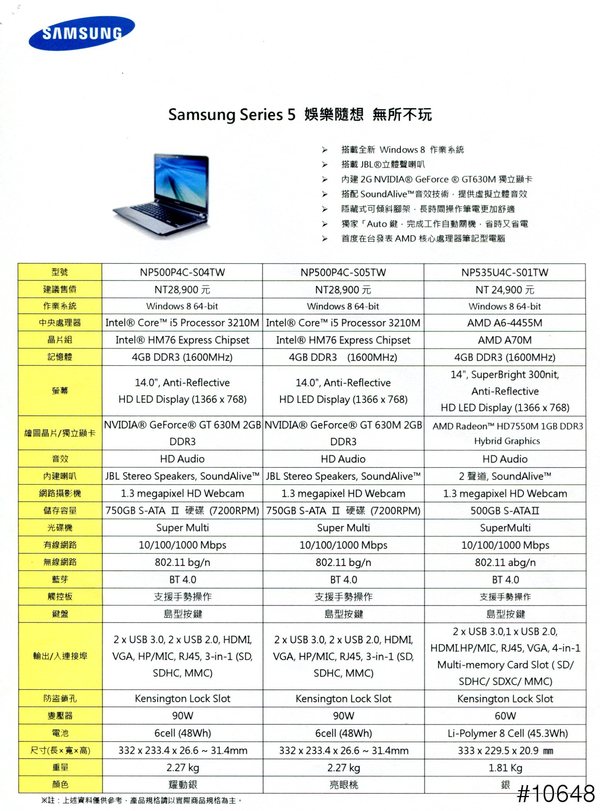 *** 上述相關資料, 圖片, Samsung NB規格及數據來自T客邦及Samsung Taiwan ***