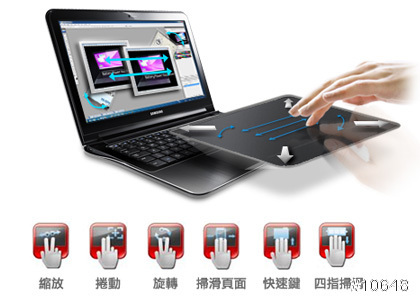 ▼ Samsung官網也有簡易圖片說明TouchPad 多點觸控板, 有支援那些手勢操作, 使操作猶如使用滑鼠一樣順暢方便,直接提升工作效率(圖片及資料來自Samsung Taiwan)