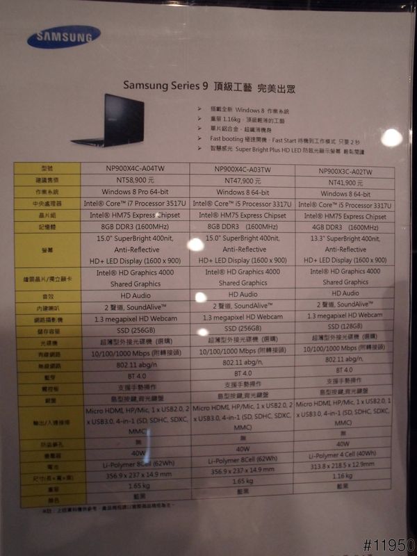▲Samaung筆電旗艦Series 9(此圖取自Samaung官網)