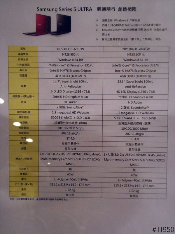 ▲Samaung Series 5 ULTRA詳細規格和價錢一覽