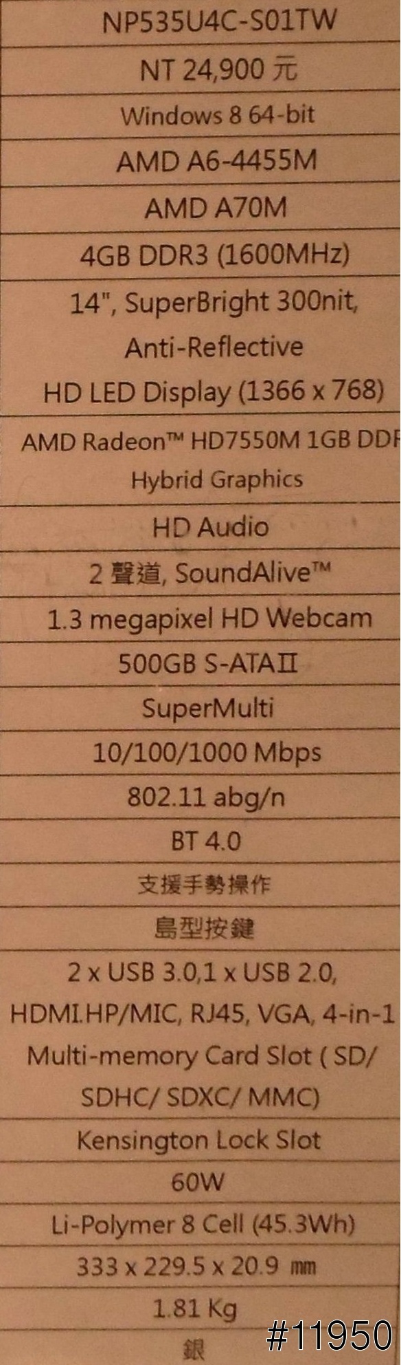 ▲螢幕為13.3"1600*900 LED螢幕,具備了防眩光,並擁有三星獨家的Super Bright Plus技術,使畫面更亮麗