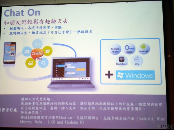 ▲Samaung獨家通訊軟體Chat on,功能和目前熱門的Line一樣,該軟體和上面介紹的軟體有個不同的地方,就是可在非三星的產品上運作並支援多種作業系統