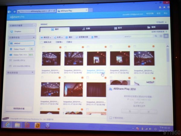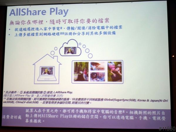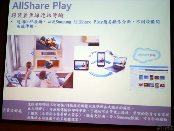 ▲Samaung獨家傳輸軟體Allshare play,可以把在不同網域中的三星產品相互連結,進行同步、閱讀和刪減檔案