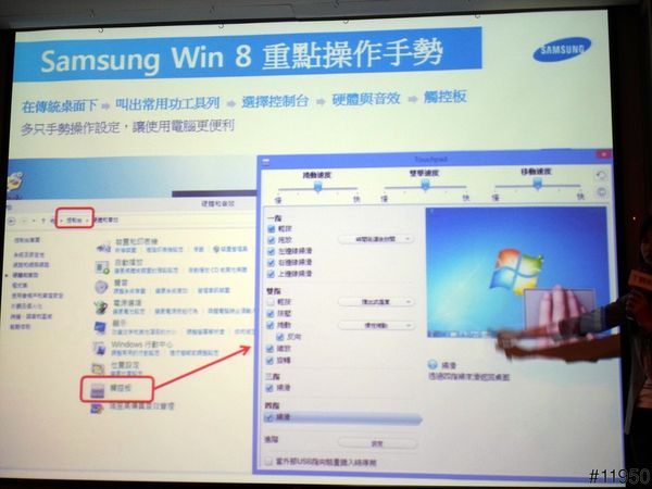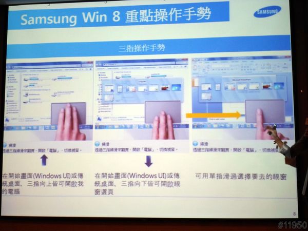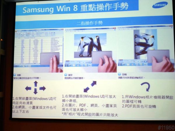 ▲以下三張投影片為Samaung Windows 8觸控板主要手勢介紹,給需要的人參考