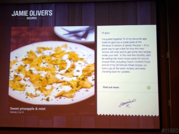 ▲Samaung在Windows 8中內建了英國名廚傑米·奧利佛的有機健康食譜,有興趣的人可以照著做