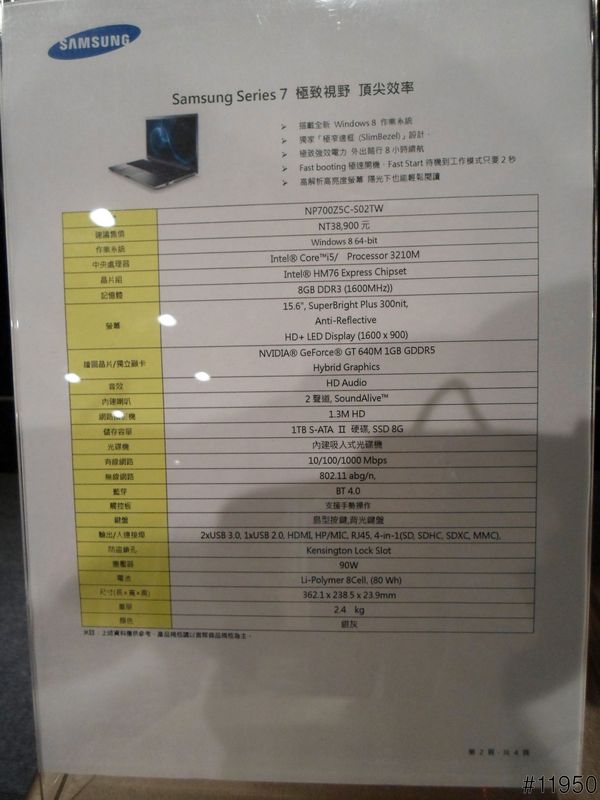 ▲Samaung商務筆電Series 7(此圖取自Samaung官網)
