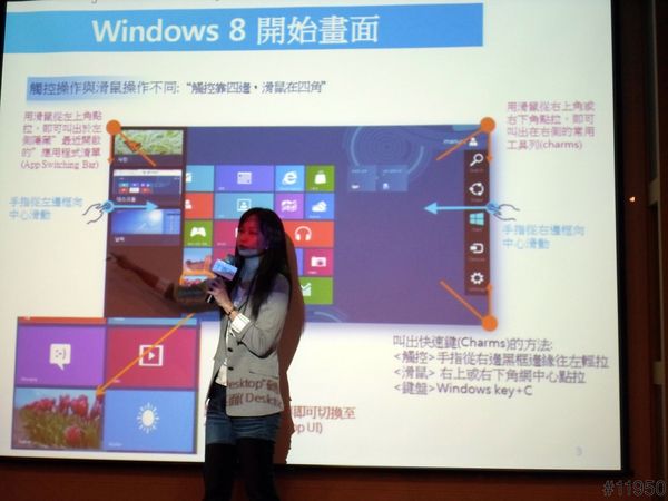 ▲Windows 8操作口絕:觸控按四邊,滑鼠在四角