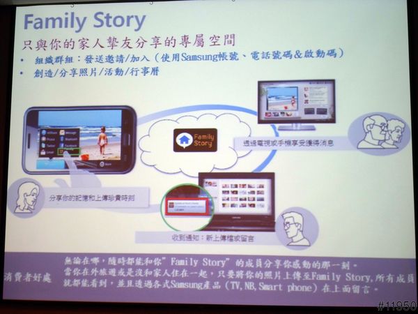 ▲Samaung獨家社交軟體Family Story,只要把朋友加入群組後就可以在三星的手機、筆電和smart TV之間互相分享圖片
