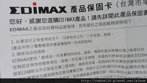【▼】小巧的外箱!開宗明義的告訴我們產品有網通大廠訊舟科技堅實的三年保固及貼心的一年的產品到府收送服務!