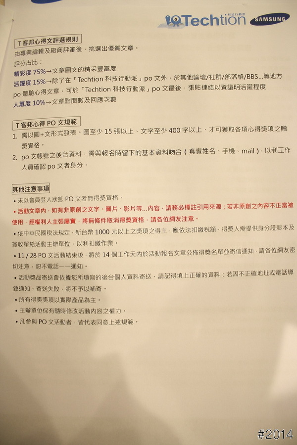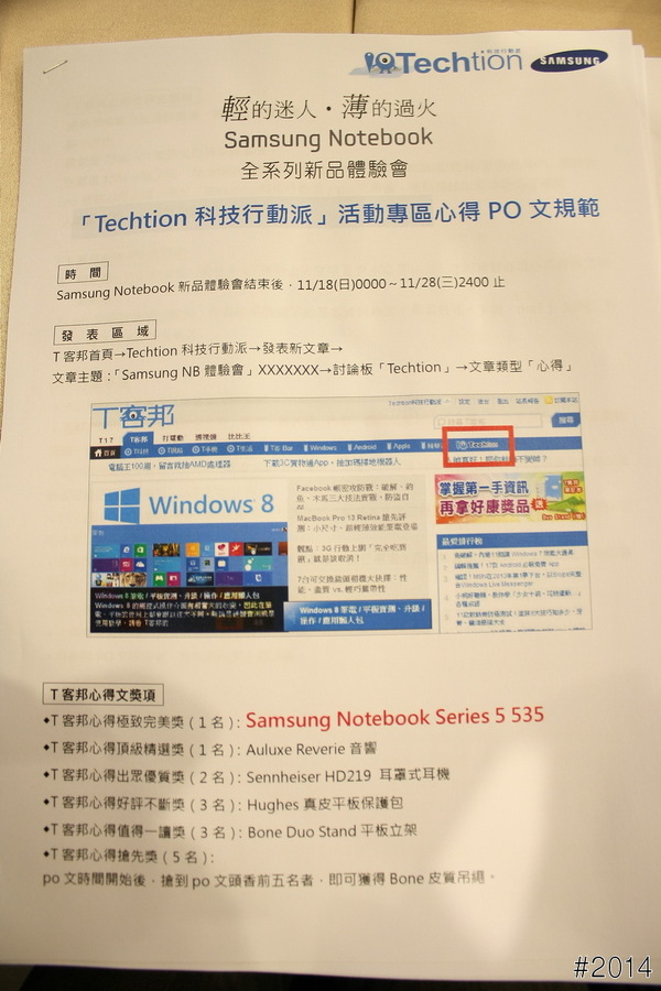 體驗會完的PO文的規範跟獎項,最大獎就是最吸引人的 Samsung筆電 一台。