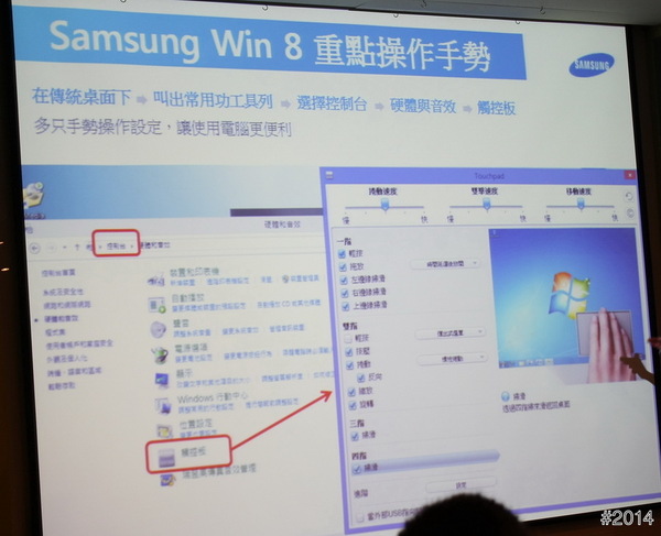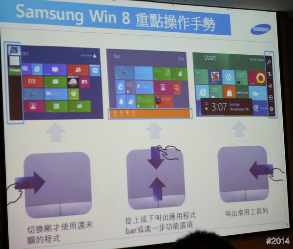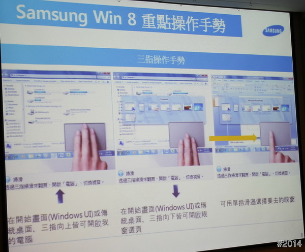 三星增加了觸控板的重點操作手勢功能,讓使用者只要使用觸控板,就能很便利地使用Windows 8。