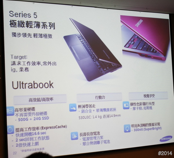 旁邊的桌上排了 Samsung筆電 的實機,讓大家能好好的把玩跟拍照。