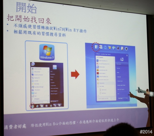 很多使用者習慣舊的作業系統開始介面,三星也提供「開始」軟體,讓使用者可以安心的來使用Windows 8。