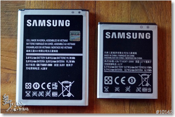 ▲1650mAh 充電式電池使用和S2相同的型號(右邊),和左邊Note2的電池相比較一下