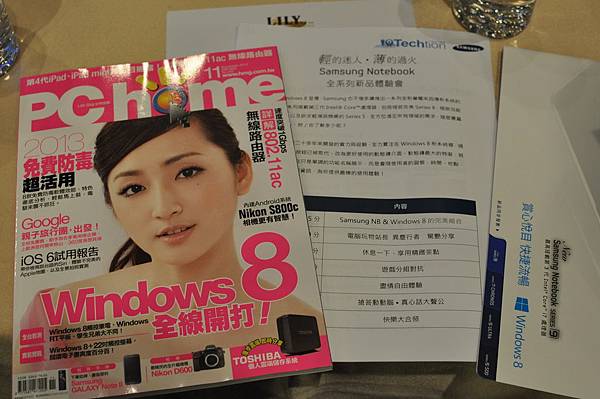 今天很開心能一次體驗這麼多款Windows8的NB,但是也因為太多款了,反而不能好好體驗某系列。之前對Series9系列的NB較感興趣,也很幸運剛好我們這桌分配到的就是Series9,實際在把玩之下,非常滿意,在不到2kg的重量,還能兼具效能,開機也非常快速,實際開機約7秒內完成,對Samsung的NB有點改觀,以前並不曾接觸過Samsung的NB,對品質及效能上的些許疑慮,也透過這次的體驗會一掃而空,雖然這次並無搭載觸控面板的NB,但其實搭配多點 觸控板在一定程度上比起直接用手指去點螢幕還要快。這次這幾款針對不同定位的NB讓人不得不對Samsung刮目相看。