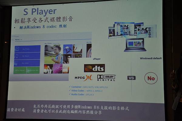 Samsung 獨有的S Player 可播放多種影音格式,這也是windows8內建的播放軟體所沒有的