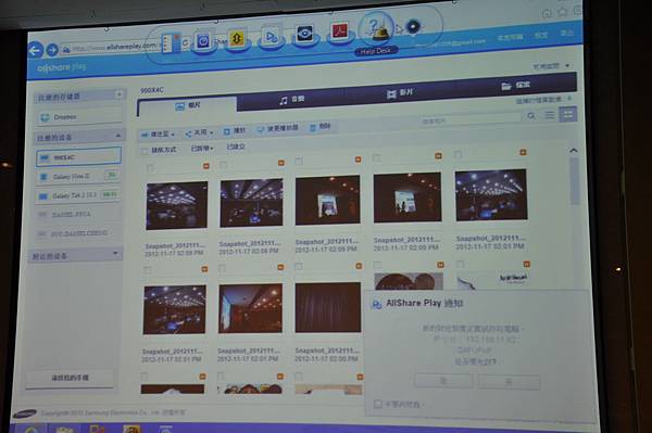 Samsung 獨有的AllShare Play,相信使用Samsung手機的人應該不陌生,可以將畫面同步傳輸給不同的裝置