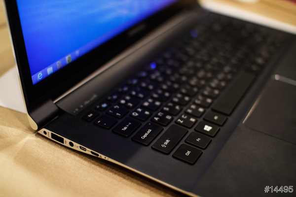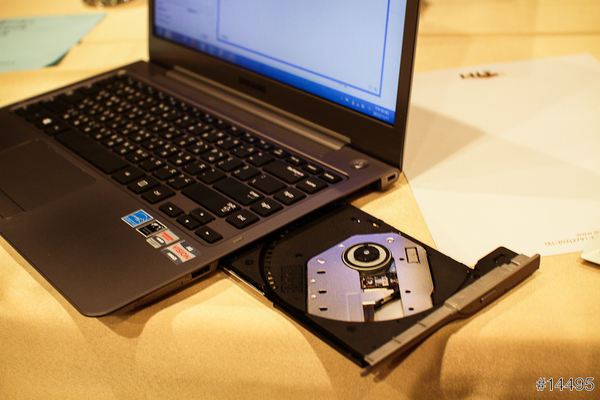 ↑從側面可以看到它輕薄不輸其他Series5系列,一開始分配到的體驗機就是它,所以對它的感觸也特別深,除了流利時尚的外型之外,雖不算最輕,但薄度也直逼市面上的ULTRA BOOK了,最令我感到神奇的是,在這台不號稱輕薄卻稱得上輕薄的筆電上,竟然還設置了彈出式光碟機,簡直太有誠意了嘛!薄度僅次於Series 5 ULTRA,而略勝於Series 5 500,卻配置了一台彈出式光碟機,簡直極具薄度、實用與可口價位於一身嘛~ψ(._. )