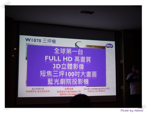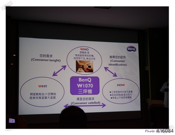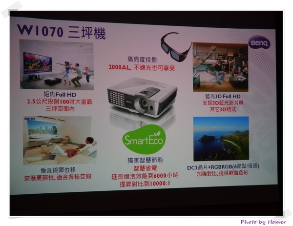 上述的項目當中,如果您符合兩項以上,那麼恭喜您,您的確有入手投影機的衝動跟興趣。接下來將為未能參加體驗會的您來介紹,本次體驗會主軸產品BenQ W1070 3D劇院投影機。 (投影片來源皆取自體驗會活動)