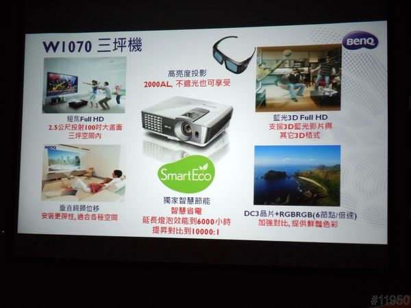 ▲BenQ W1070也是全世界第一台藍光3D高畫質短焦投影機