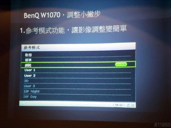 ▲BenQ W1070調整模式內建6種預設模式並提供了3組使用者自訂參數
