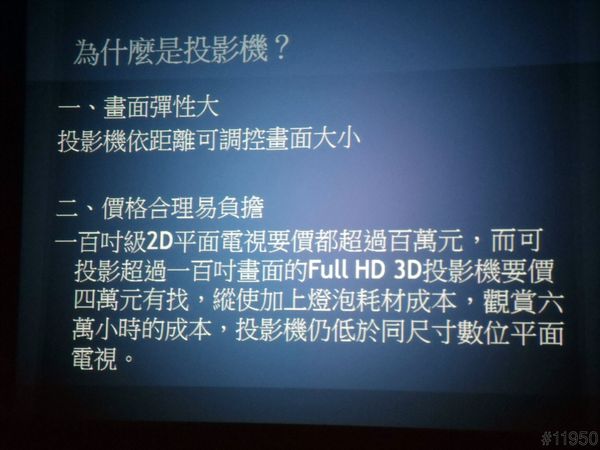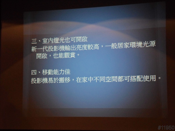 ▲現在投影機的流明數都有一定水準,在一般燈光下都可以看得清楚,再加上投影機易於電視搬移