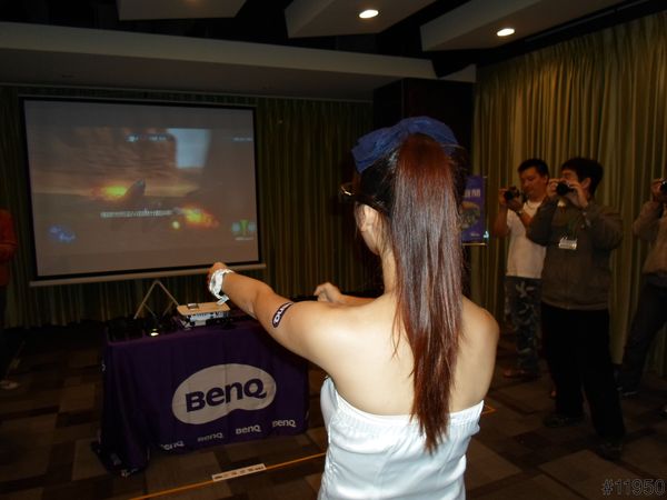 ▲我們這組派出我來達奪冠願望,但是事與願違〒ˍ〒,這是我第一次玩體感而且還是3D遊戲,比用傳統鍵盤搖桿來玩還有臨場感(此圖借用T客邦《BenQ W1070 三坪空間創造百吋視野》體驗花絮報導)