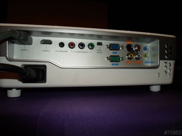 ▲BenQ W1070投影機背面照,從右到左連接軌分別是:音源端子、AV端子、S端子、D-Sub、RS232、Mini USB、色差端子、12v trigger和2個